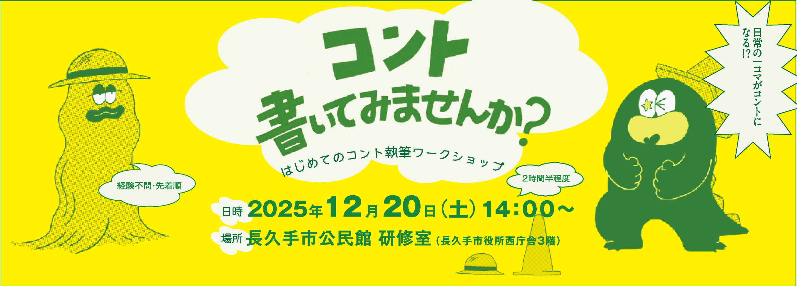 日常の1コマがコントになる!? 気軽な気持ちでコントを書いてみませんか? おしらせ 概要 日時・申込 ナビゲーター お知らせ 開催情報を公開しました!(2025年11月7日更新) 概要 内容 文化の家演劇系創造スタッフ屑…