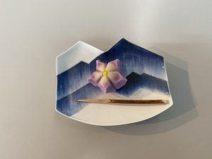 お茶会といえばお茶菓子!なにやらちょっと変わったお皿にちょこんと乗ってお茶菓子がやってきました。