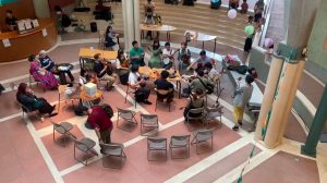 満足したのでおうちに帰ろうかと思ったら、ガレリアから楽しそうな音が聞こえてきました。アイルランド音楽のセッションが始まっていました。いろんな楽器で1つの音楽を奏でていて、みんなノリノリで楽しそうでした。