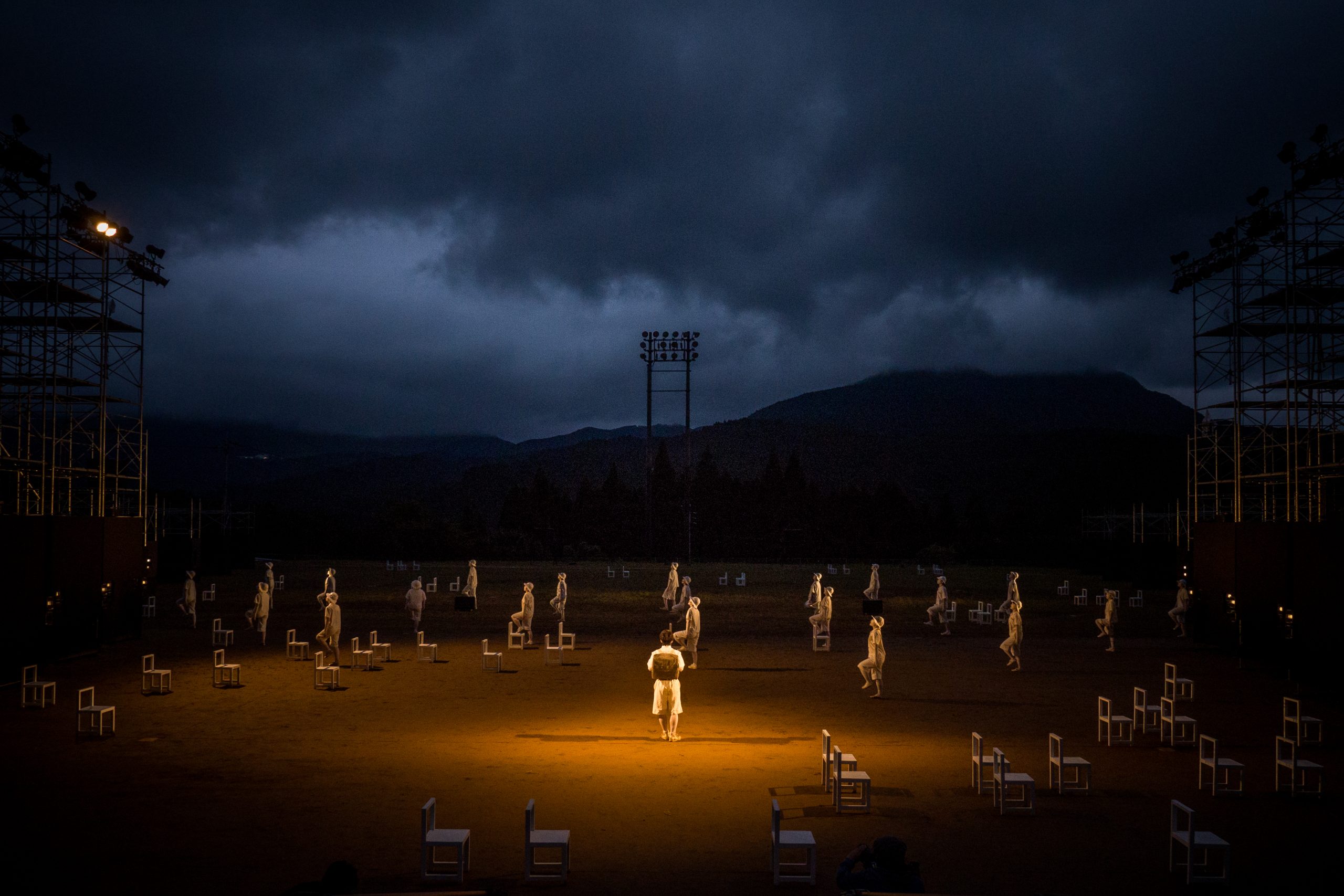 2017年に主宰松本雄吉氏の逝去により、惜しまれながら解散した維新派。今回は、松本雄吉氏の最後の演出作品となった『トワイライト』を約4m×7mの巨大スクリーンで上映します。奈良県曽爾村の野球場で上演された本作を、石作神社の境内にて上映することによる、新たな『トワイライト』をお楽しみください。