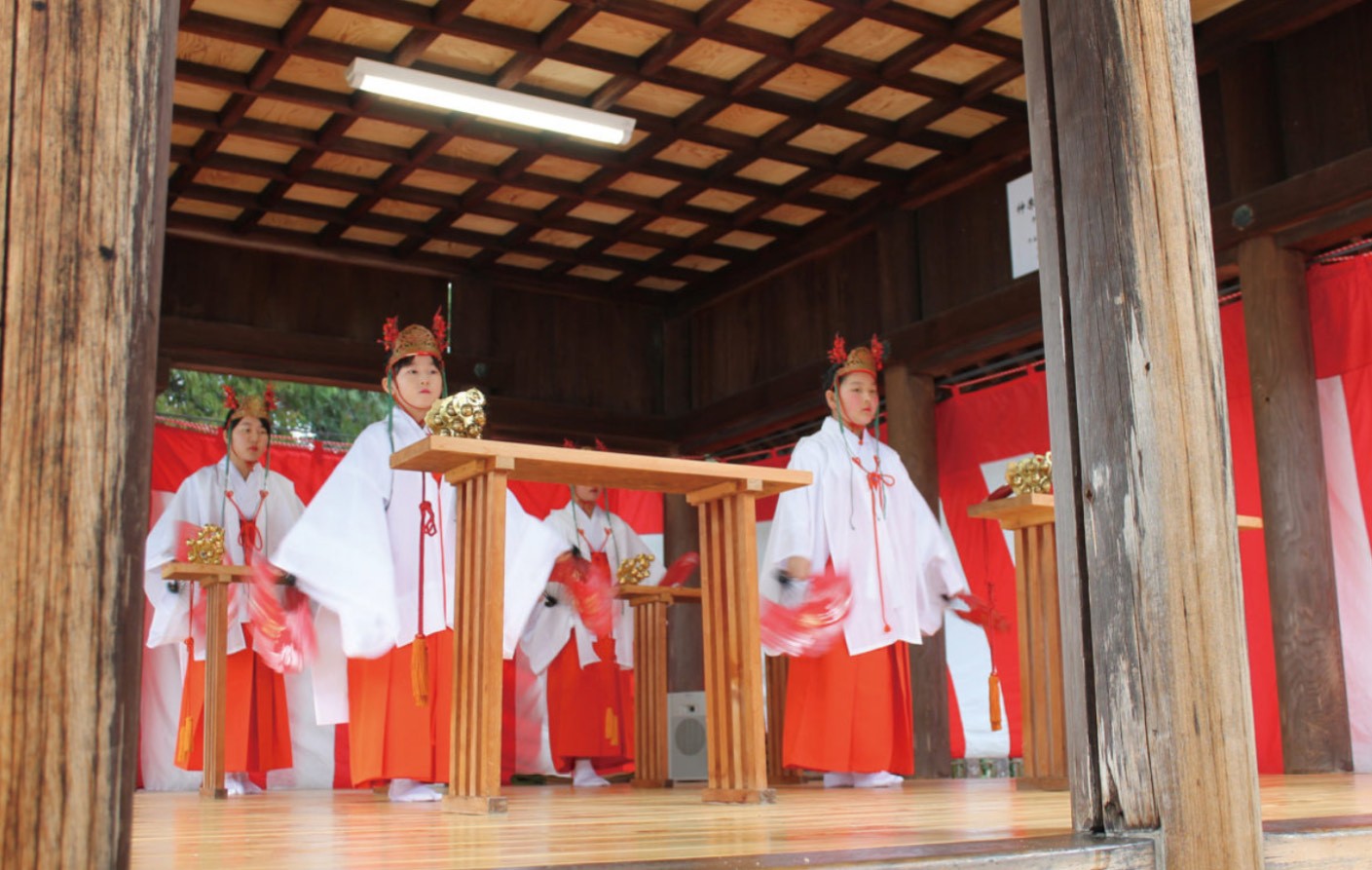 日本の伝統文化「巫女舞」を親子で楽しく体験できる教室です。こどもたちが祈りをこめて神様へ舞を奉納します。