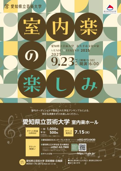 | 主催・問合せ | 愛知県公立大学法人 愛知県立芸術大学 芸術情報・広報課 0561-76-2873 (平日9:00~17:30) |