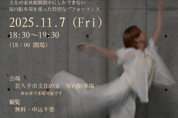 秋の夕暮れに舞う―――トワイライトダンス @文化の家屋内駐車場 おしらせ 公演内容 出演 チラシ お知らせ 公演情報を公開しました!(2025年10月15日更新) 公演内容 秋の夕暮れに文化の家屋内駐車場を舞台に、休館期…